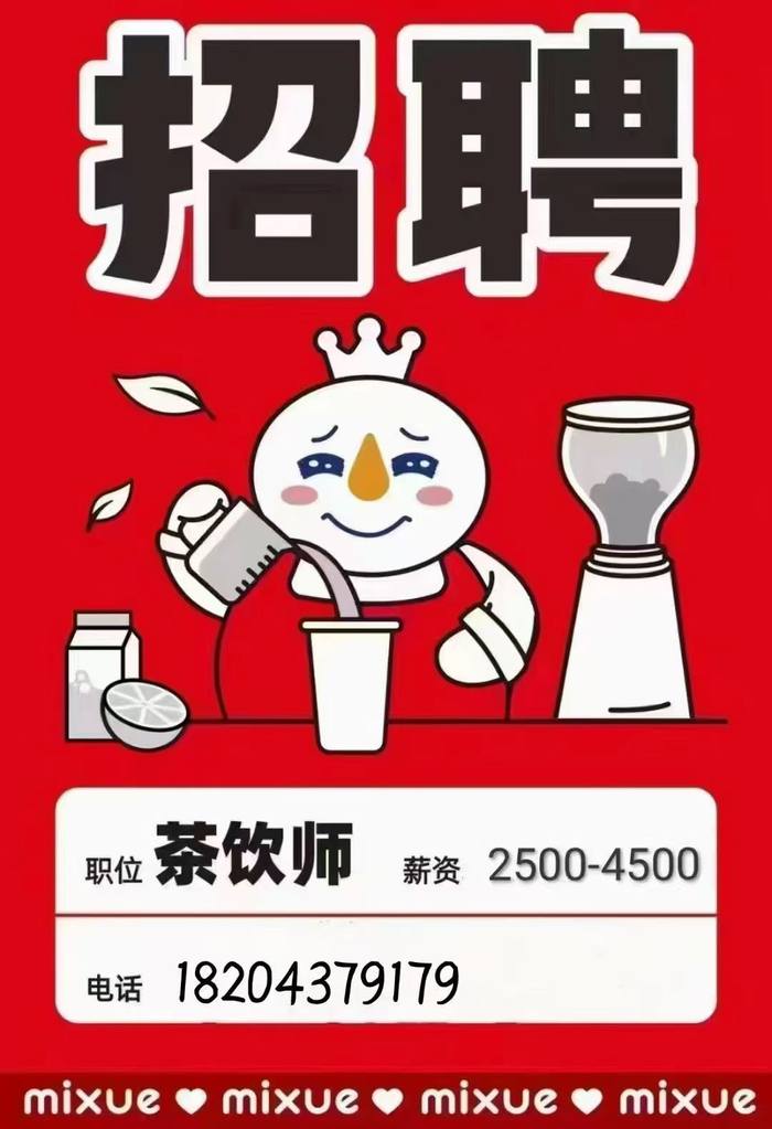 【蜜雪冰城】招聘长期短期店员
